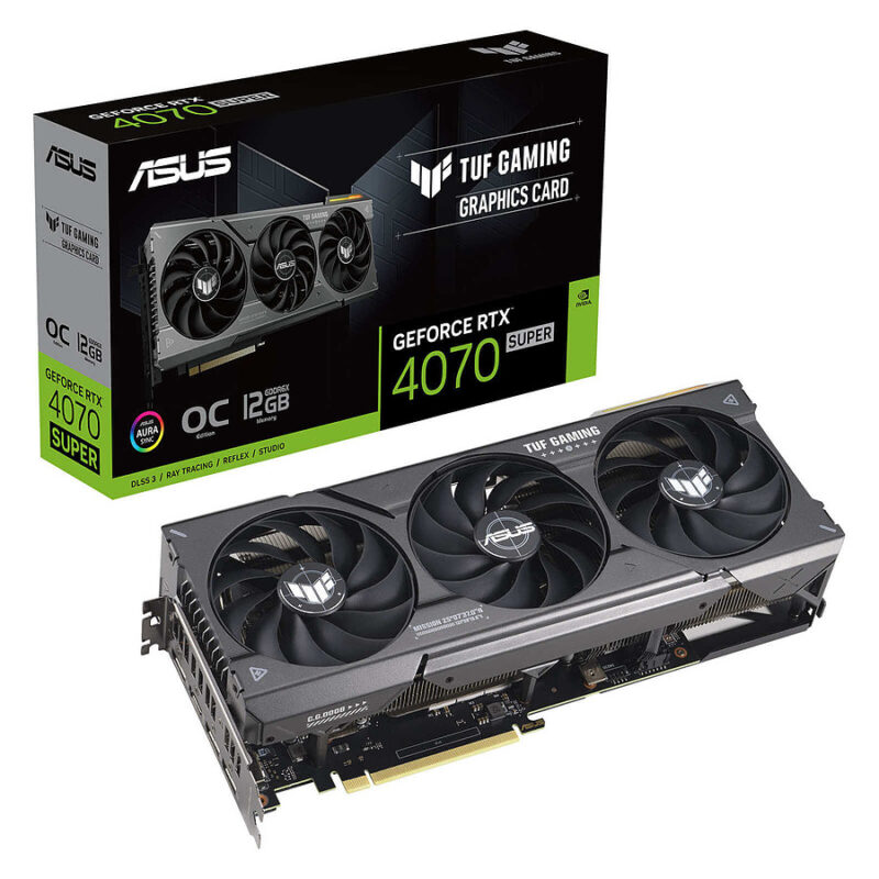 GeForce RTX 4070 SUPER, PCI-Express 16x, 12 Go GDDR6X, HDMI / 3x DisplayPort, DLSS 3La carte graphique Asus GeForce RTX 4070 SUPER TUF OC met à disposition toutes les performances de l’architecture NVIDIA Ada Lovelace et la puissance combinée du ray-tracing et du DLSS3 pour vous permettre de créer votre configuration PC gamer, qui vous fera vibrer en 1440p dans les meilleures conditions !